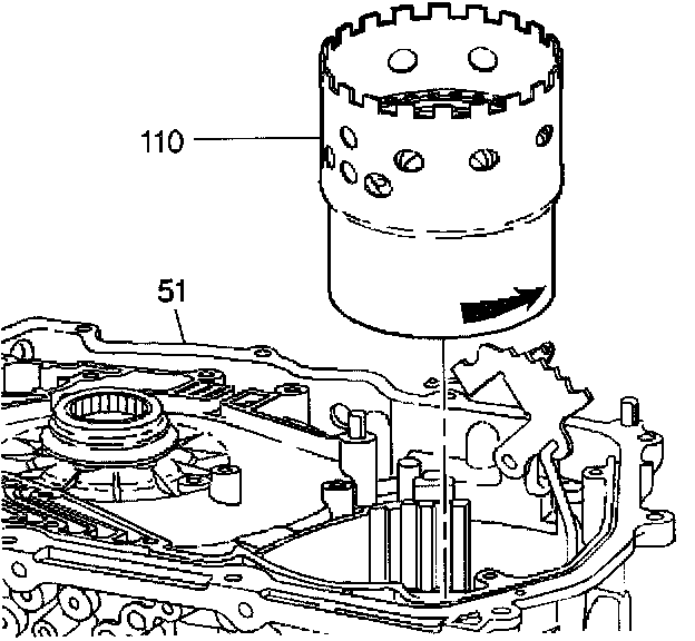 1. Install the forward clutch assembly (110) into the transmission case (51).