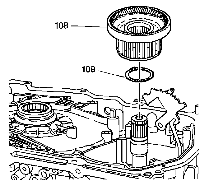 2. If the forward clutch hub to race thrust washer (109) did not remain with the forward clutch hub, remove the forward clutch hub to race thrust washer (109).