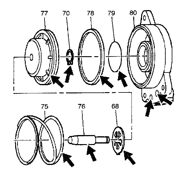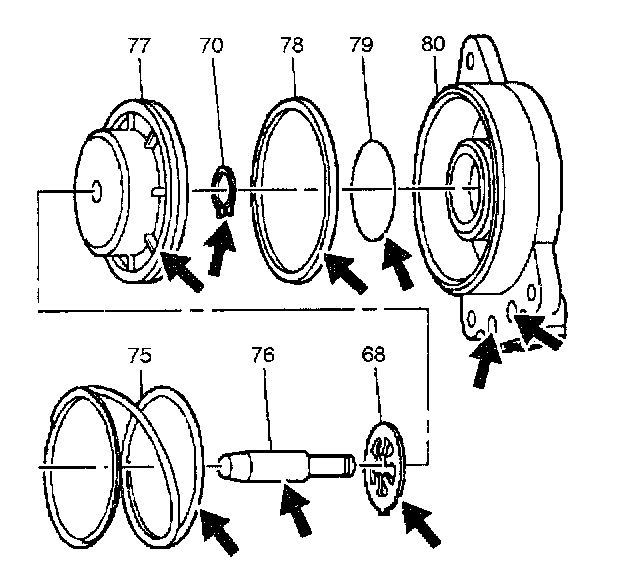 13. Install the new seals (78 and 79) onto the servo piston (77) and servo cover (80).
