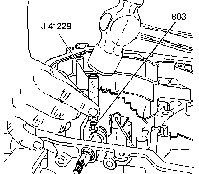 4. Install the manual shaft pin (803) into the case. Use the J 41229.