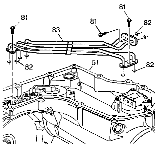 7. Install the oil feed pipe assembly (83) onto the transmission case (51).