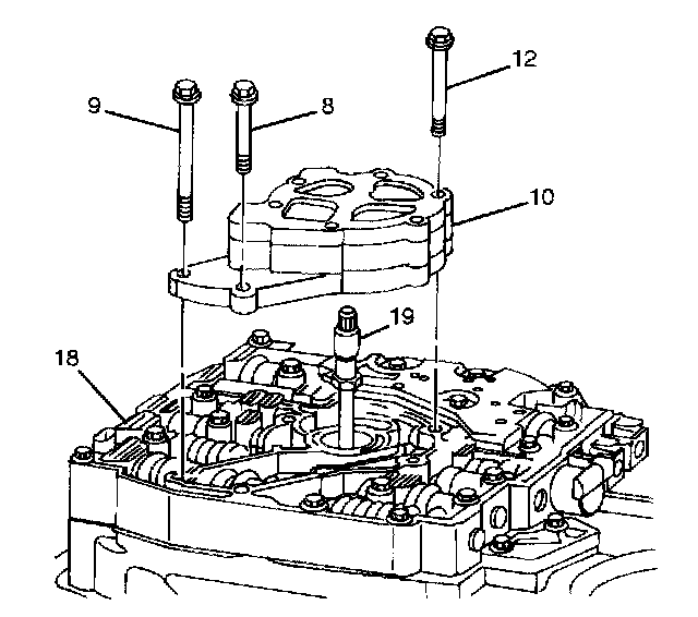 2. Install oil pump assembly (10) onto the oil pump shaft (19) and control valve body (20).