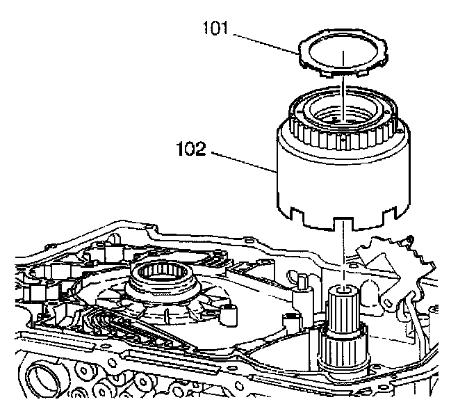 Remove the reverse input clutch housing and the 2nd roller clutch assembly (102).