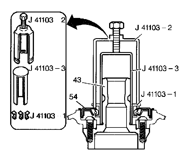 2. Insert the J41103 support body over the stator shaft (43)