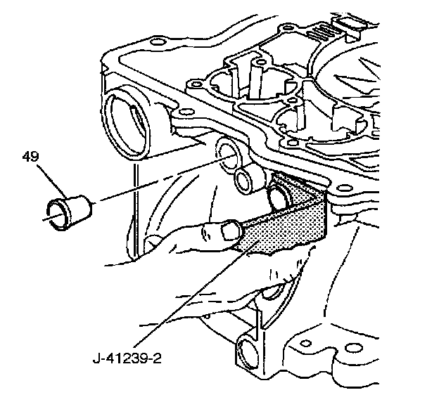 1. Use a hammer in order to wedge the J 41239-2 into the transmission cooler line seal (49) on the outside of the case bore.