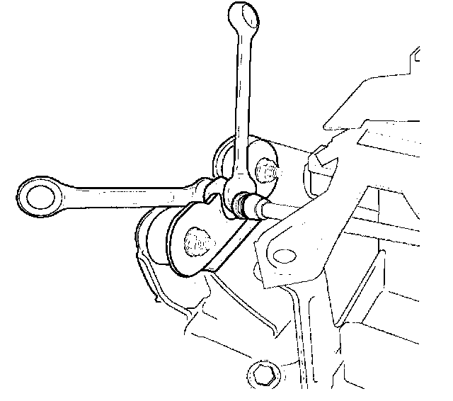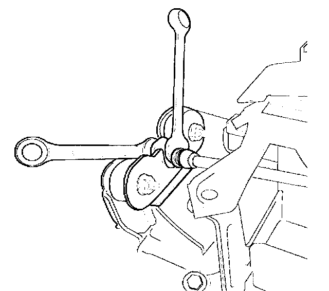 7. Remove the shift control cable from the shift control assembly by holding one nut while loosening the other one.