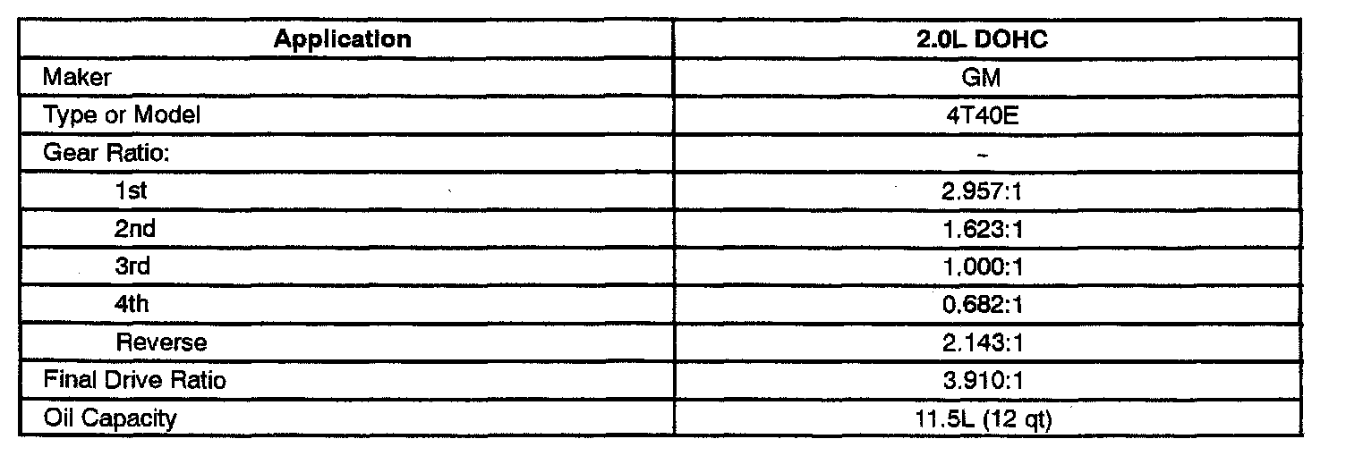 4T40-E 4-spd A/T, Transaxle Gear Ratios: