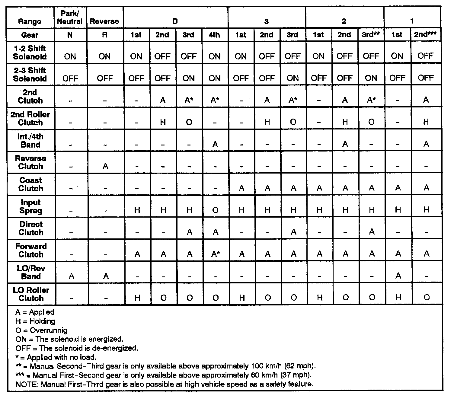 4T40-E 4-spd A/T, Transaxle Range Reference: