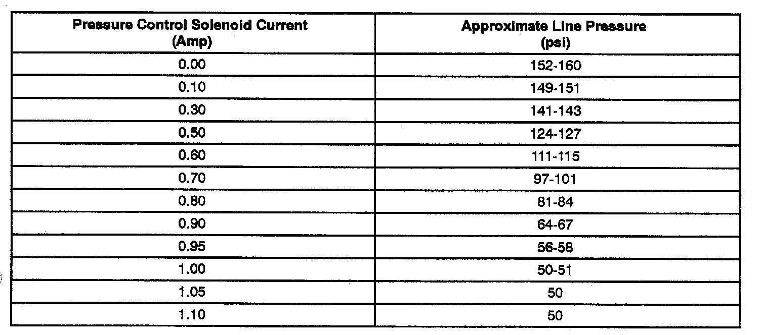 4T40-E 4-spd A/T, Transaxle Line Pressure: