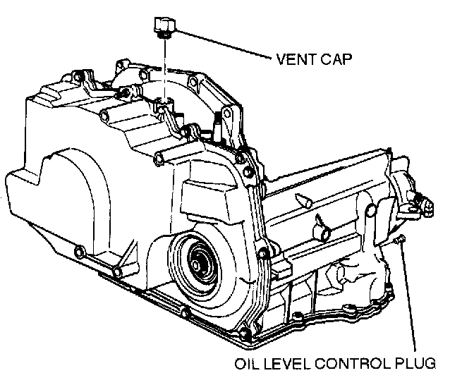 Caution: Removal of the fluid level screw when the transmission fluid is hot may cause injury if fluid drains from the screw hole.