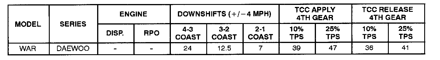 HYDRA-MATIC 4T40-E SHIFT SPEED CHART