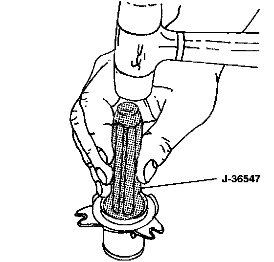 2. Install the input shaft seal into the release bearing guide sleeve. Use input shaft seal installer J-36547 with a hammer.