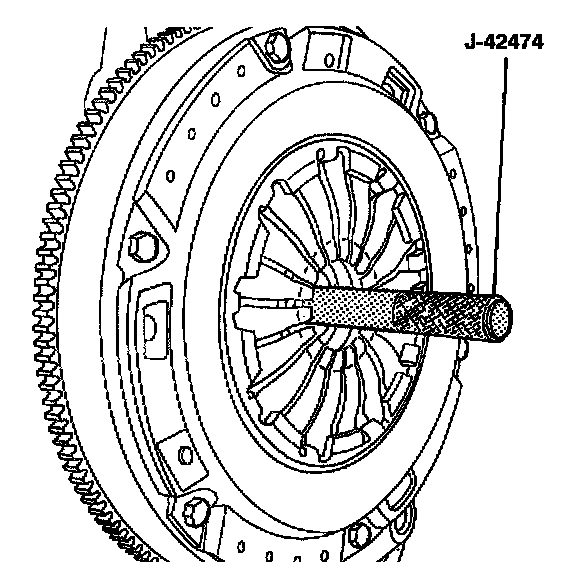 11. Align the pressure plate and the clutch disc onto the flywheel using the clutch arbor J-42474.