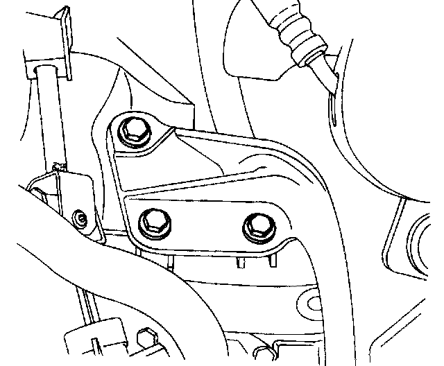 10. Remove the left front transaxle support bracket bolts and the left front transaxle support bracket.