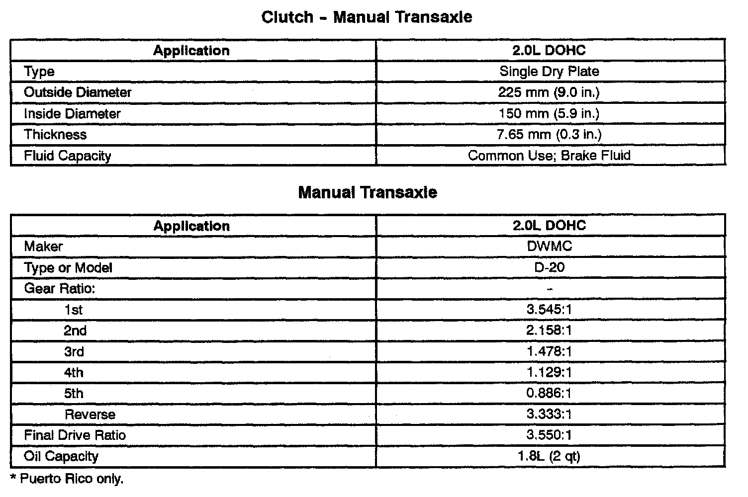 D-20 5-spd M/T, Clutch Dimensions & Transaxle Gear Ratios: