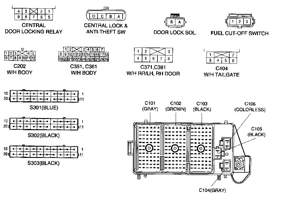 Connector Identification Symbol & Pin Number Position: