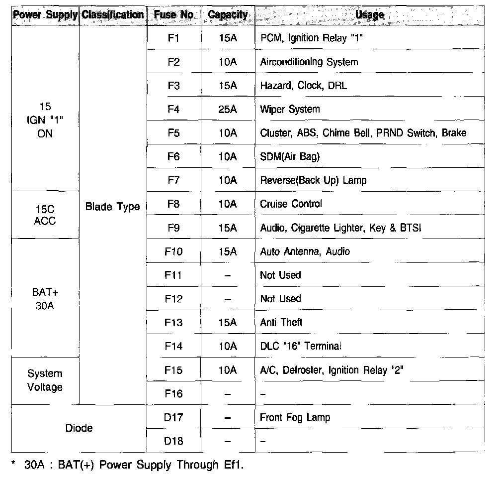 Passenger Compartment Fuse Box - Fuse Application Chart: