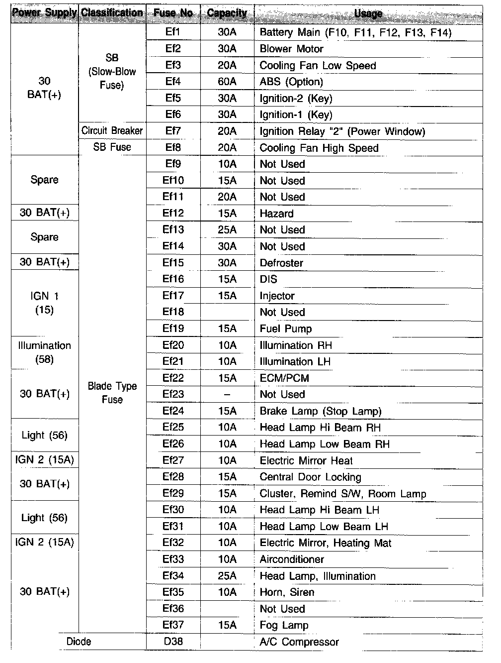 Engine Compartment Fuse Box - Fuse Application Chart: