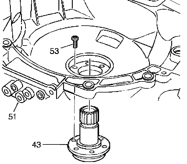 3. Install the drive sprocket support (43) into the bell housing of the transmission case.