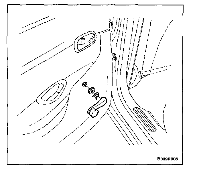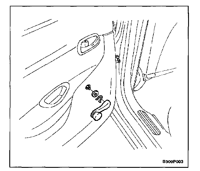 1. Reposition the plastic ring behind the window regulator handle to reveal the "C" clip.