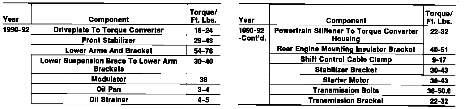 Tightening Specifications:
