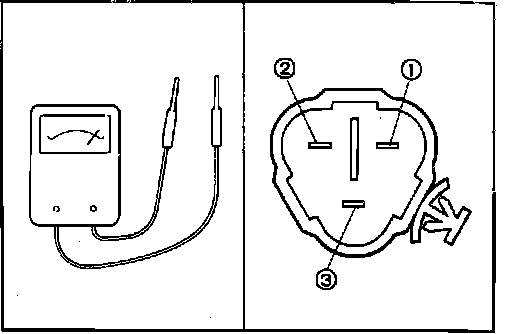 1. Disconnect the connector, then using a suitable volt/ohmmeter, measure resistance between terminals 1 and 3 and terminals 2 and 3, Fig. 19. Resistance should read 68 ohms and 38 ohms respectively.