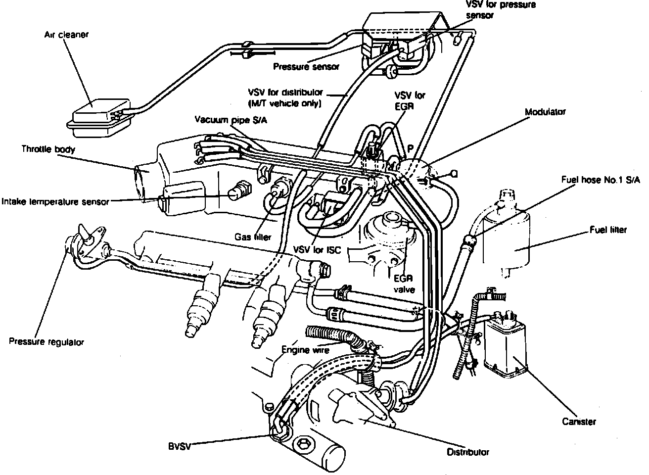 Fig. 2 Vacuum Hose Routing, Automatic Transmissions: