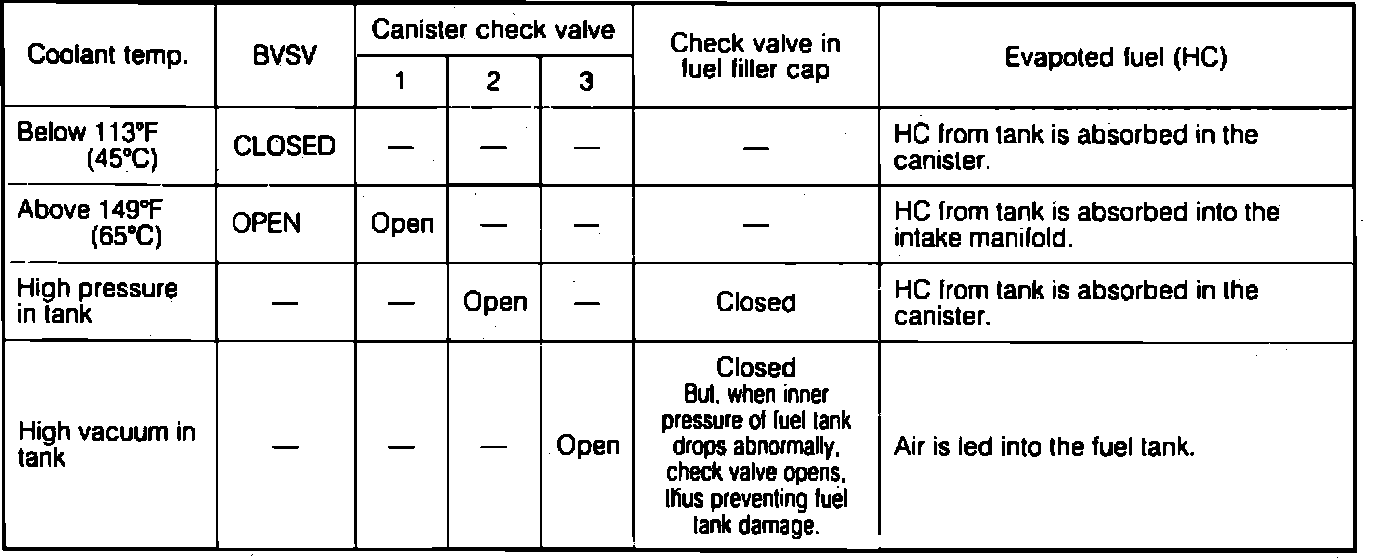 The separated HC emissions is drawn into the throttle body to be burnt together with the mixture in the combustion chamber when the bi-metal vacuum switching valve (BVSV) opens according to the engine coolant temperature.
