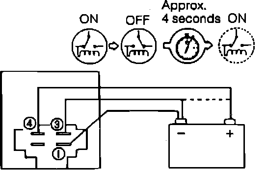 2. Connect terminal 1 to negative of battery, relay should operate.