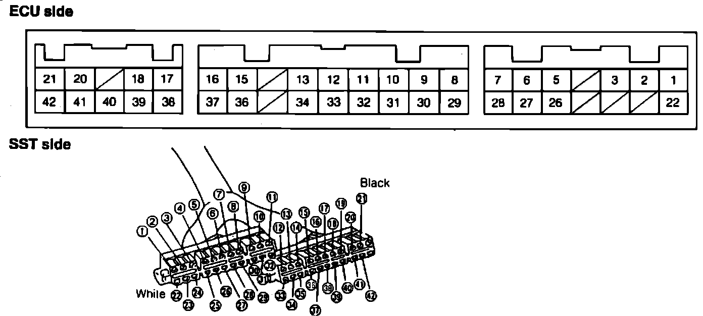 Fig. 36 ECU TEST HARNESS TERMINAL LOCATIONS: