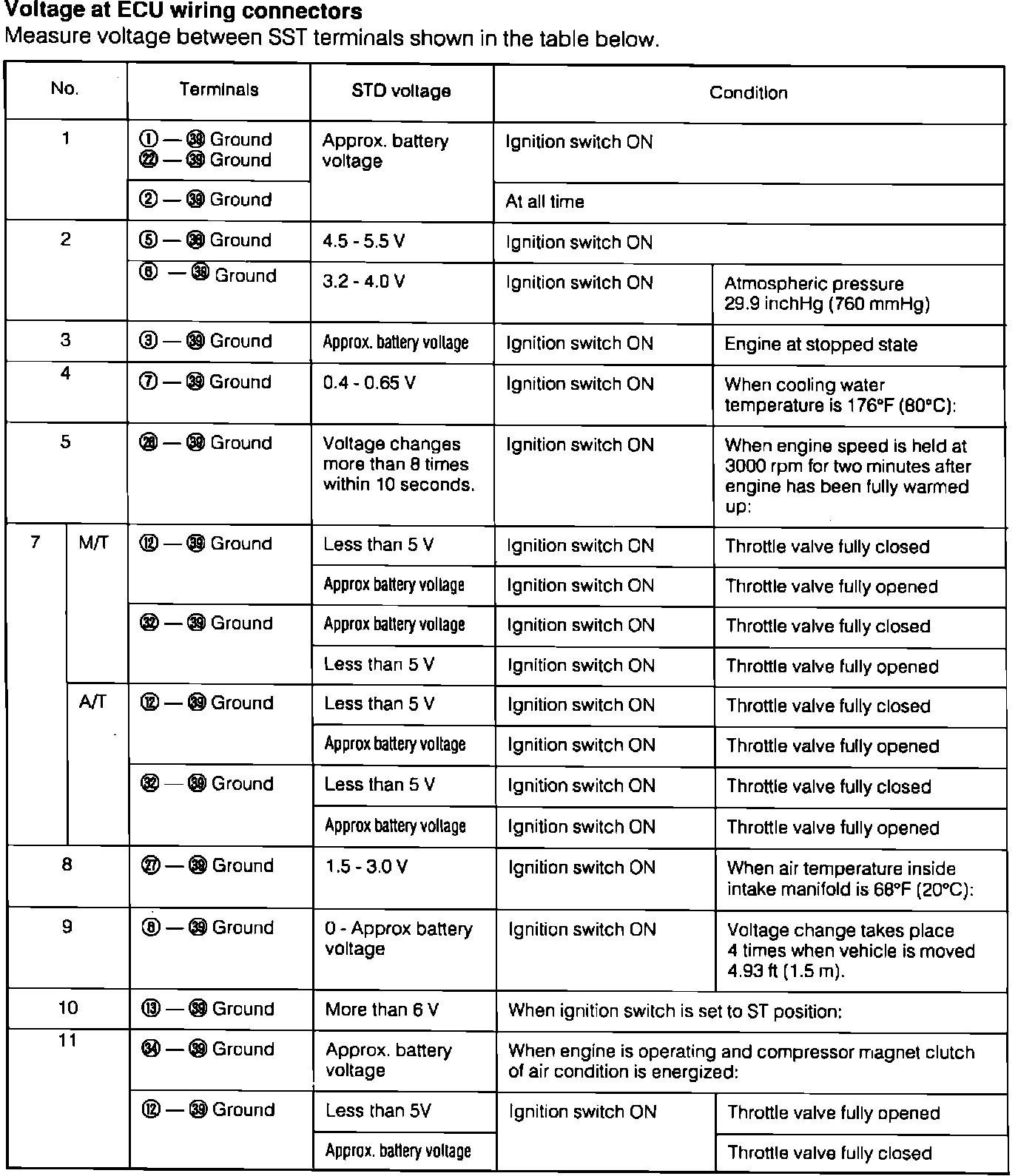 Refer to Figs. 36 through 37b for ECU wiring/connector conditions and operating voltages.