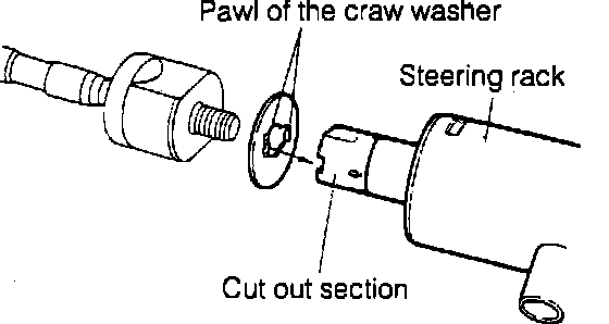 10. Install a new claw washer to steering rack as shown in Fig. 7, then install steering rack end.