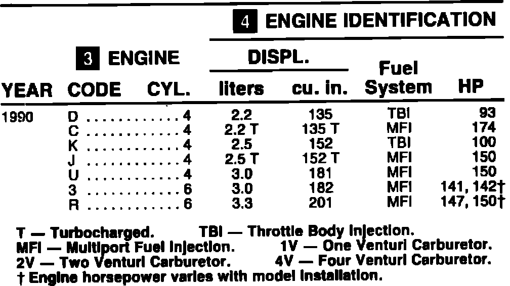 ENGINE IDENTIFICATION 1990: