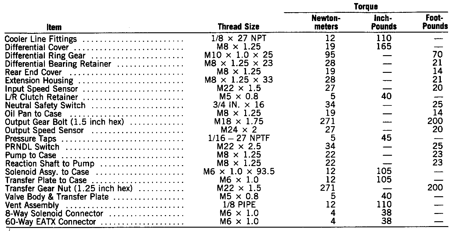 A-604 Ultradrive 4-Speed, Torque Specifications.: