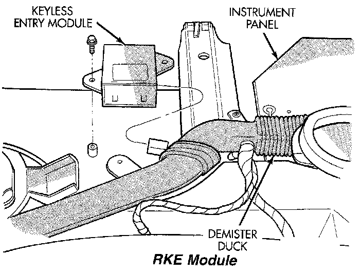 (2) Remove screws holding RKE module to instrument panel.