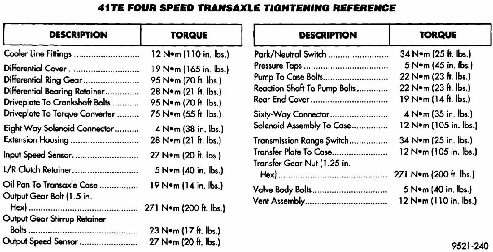 Torque Specifications