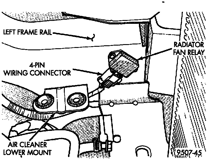 The PCM relay is located on the left front inner frame just behind the radiator (Fig. 41).