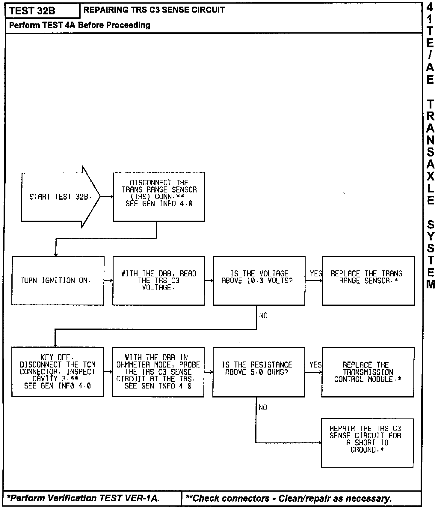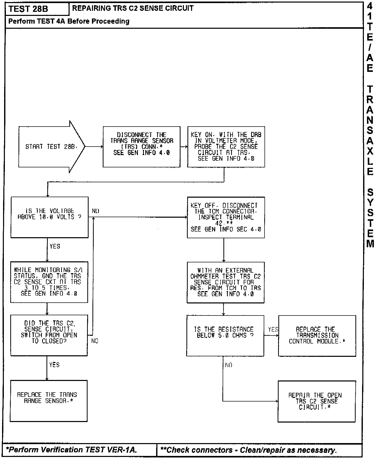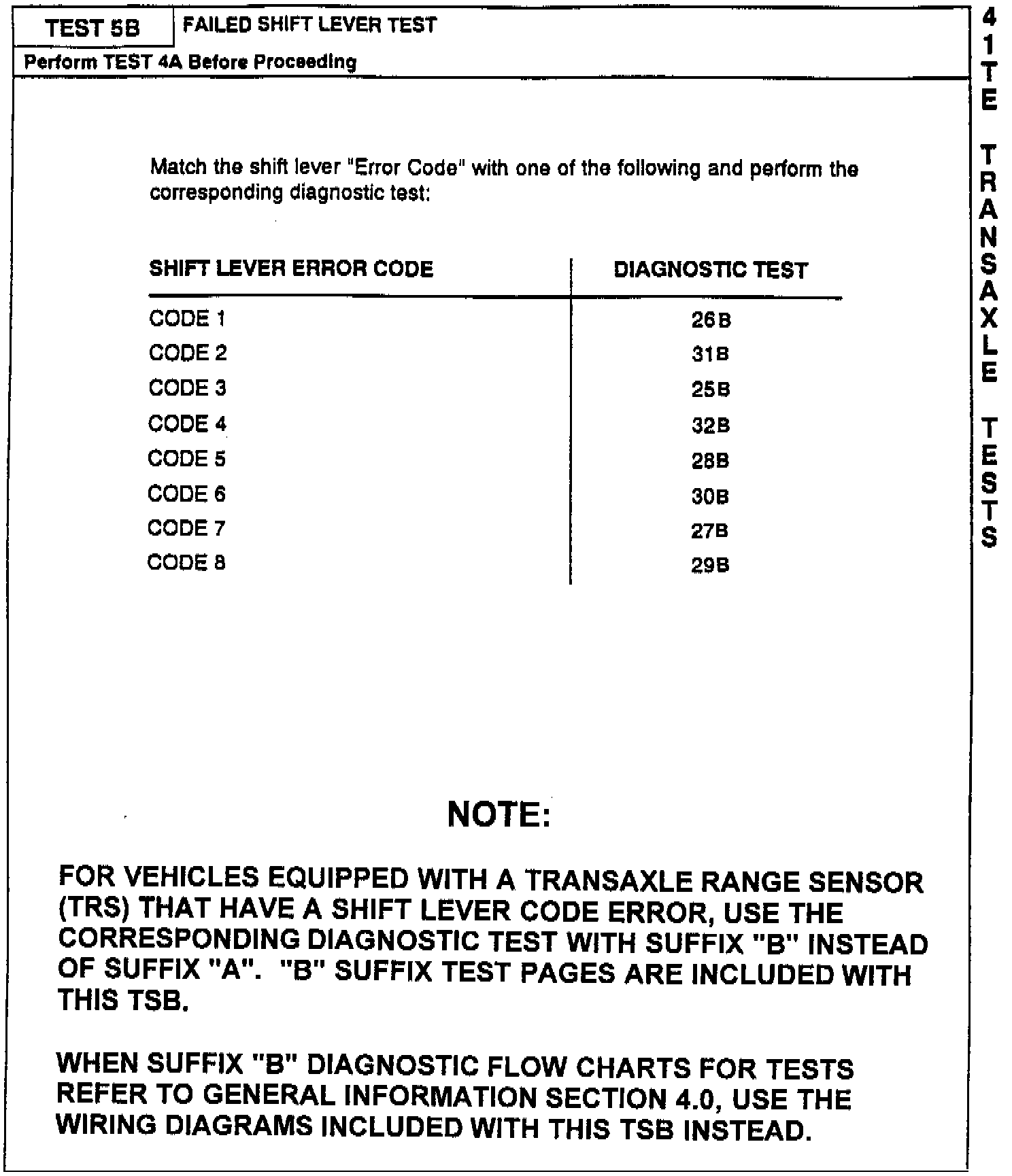During the week of June 5, 1995, a running change was made to St. Louis built vehicles equipped with 41TE transaxles that incorporated a Transaxle Range Sensor (TRS). All other 1996 vehicles equipped with 41TE transaxles are equipped with a TRS, and are documented as such in their respective service publications. Because of this running change, all of the related service information was not able to be included in the initial NS service and 41TE diagnostic manuals.