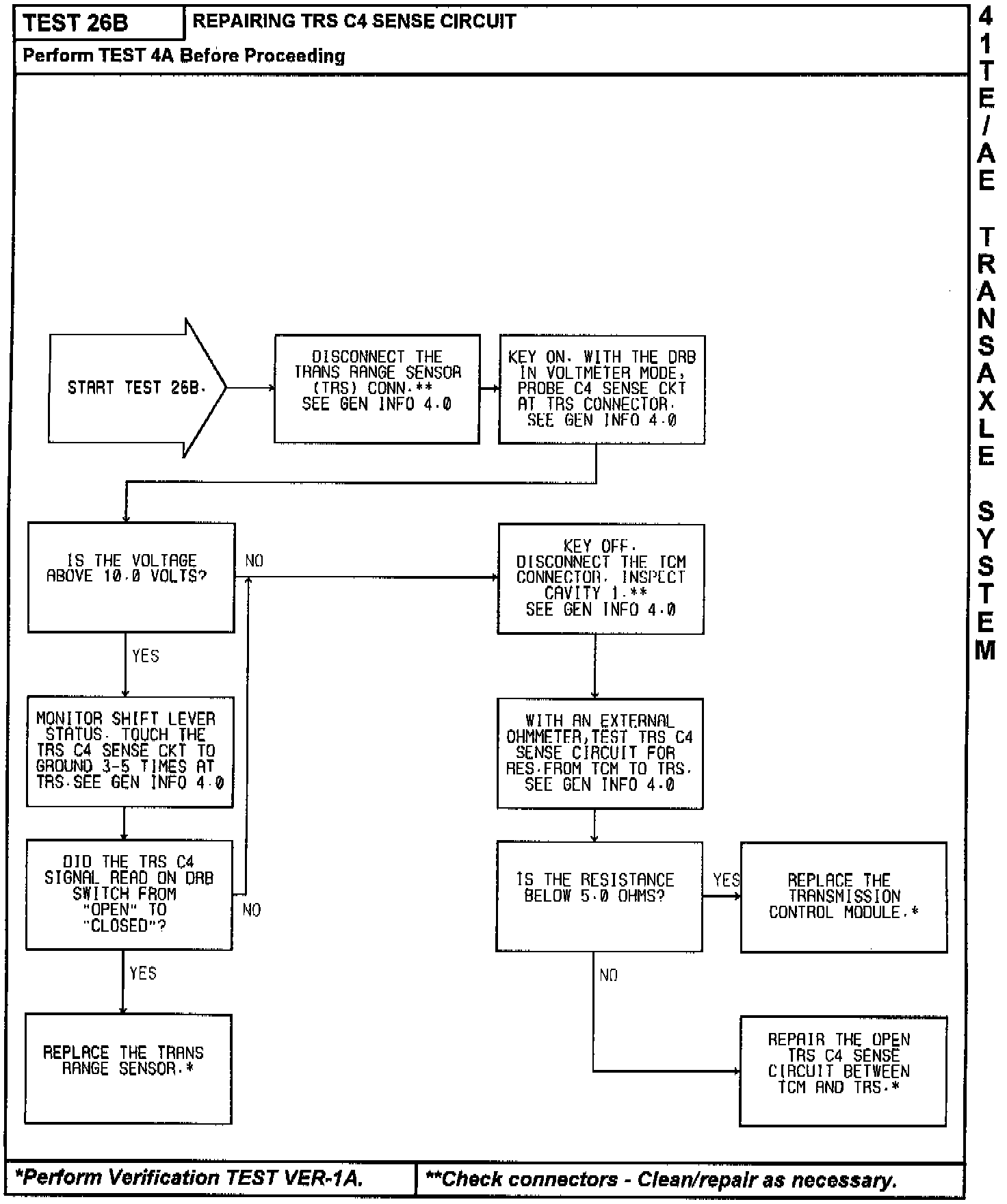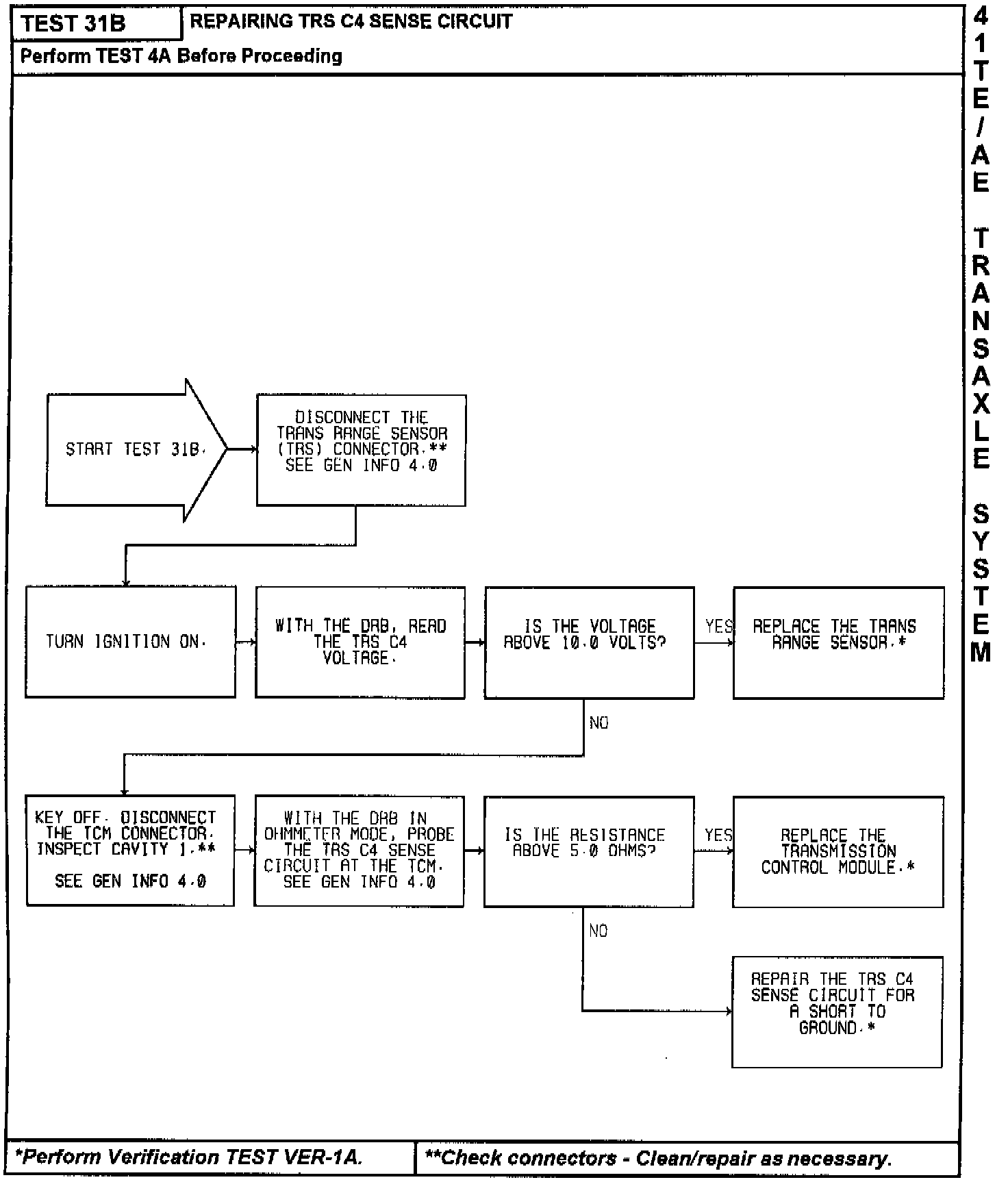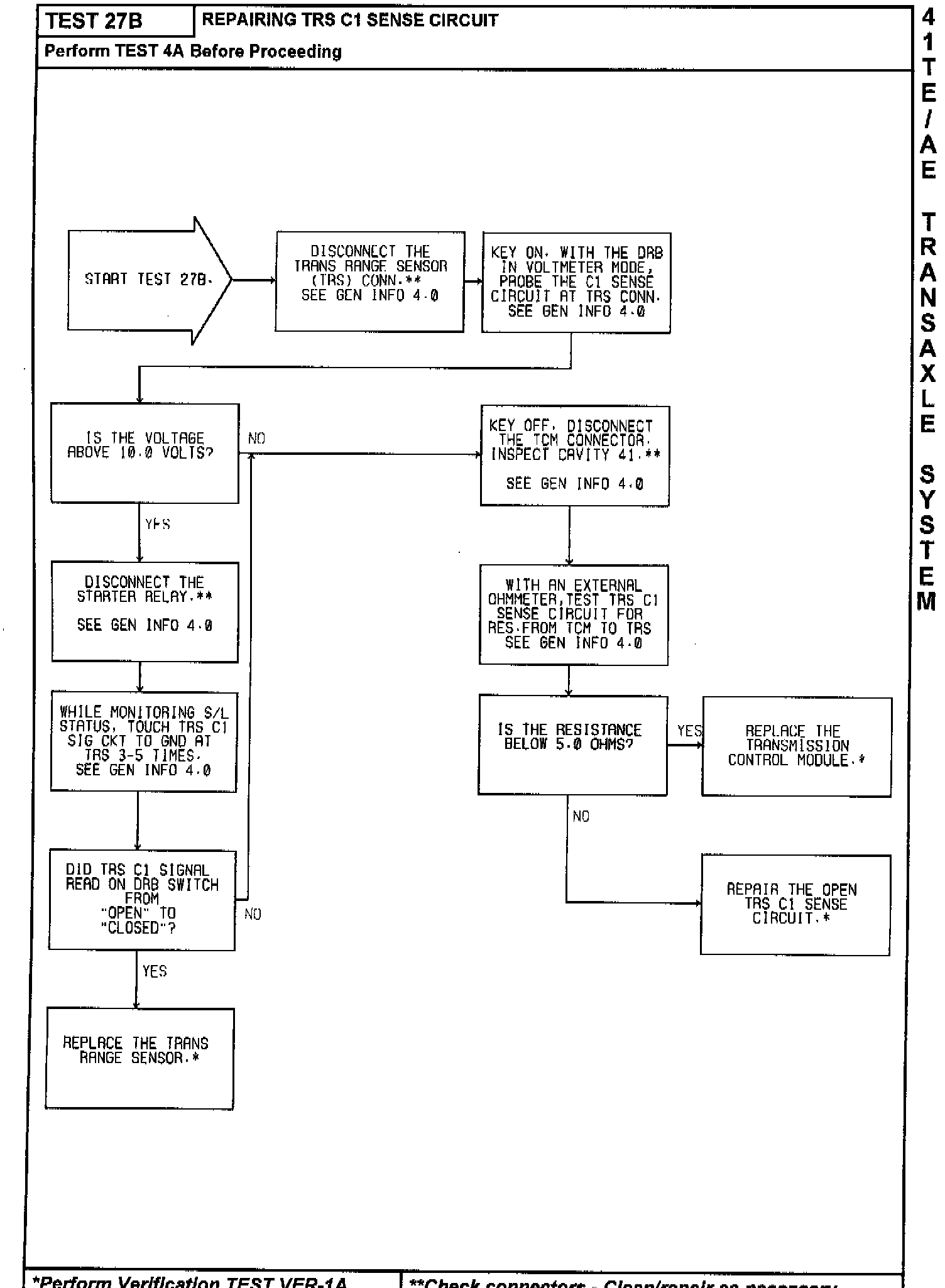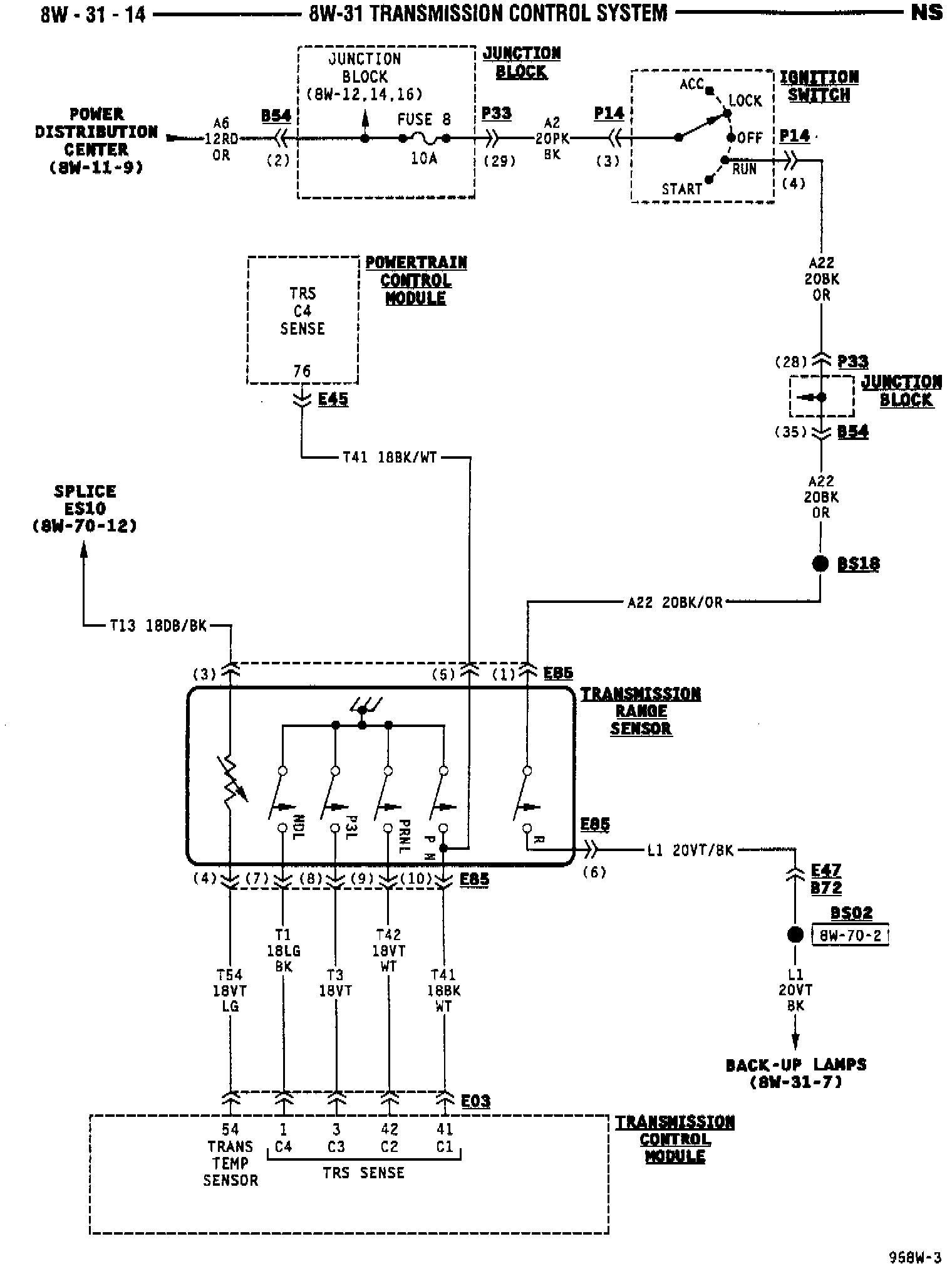 To avoid confusion in the field regarding TRS, this bulletin provides wiring diagrams from the 1996 NS service manual supplement and diagnostic flow charts from the new 41TE transaxle diagnostic manual that relate to the TRS. When the new manuals arrive at the dealerships, this bulletin will no longer be required.