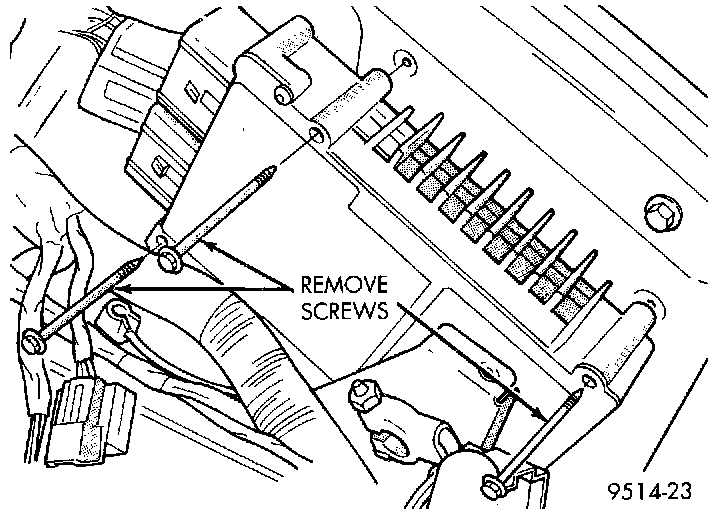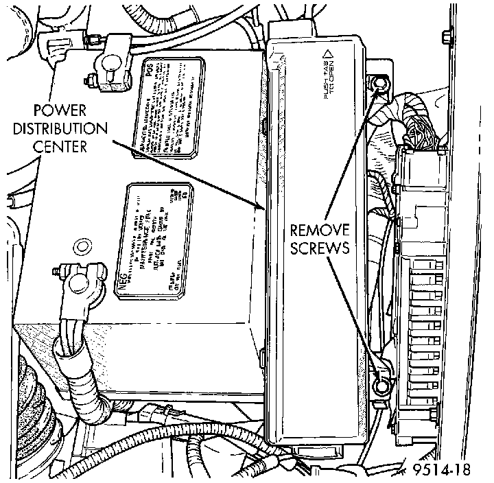 7. Pull PDC rearward to remove from front bracket. Lay PDC aside to allow access to Powertrain Control Module (PCM).