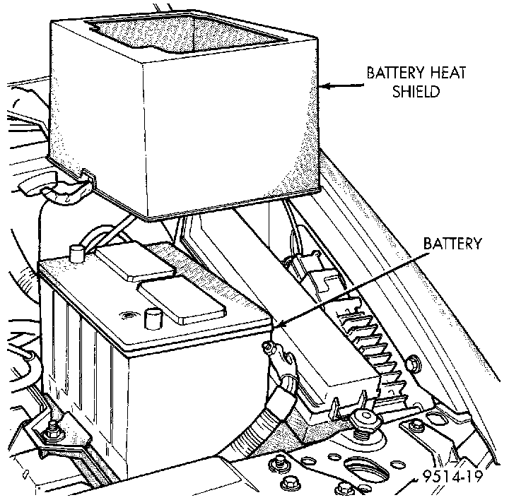 4. Remove nut and clamp holding battery to battery tray (Fig. 31).