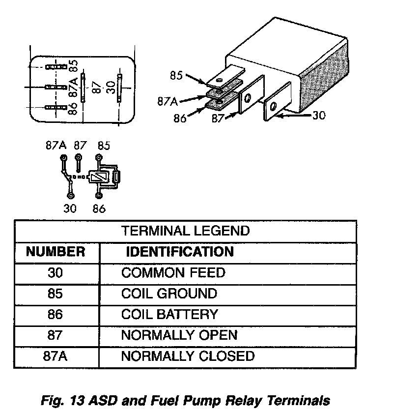 Fig. 13 - ASD And Fuel Pump Relay Terminals: