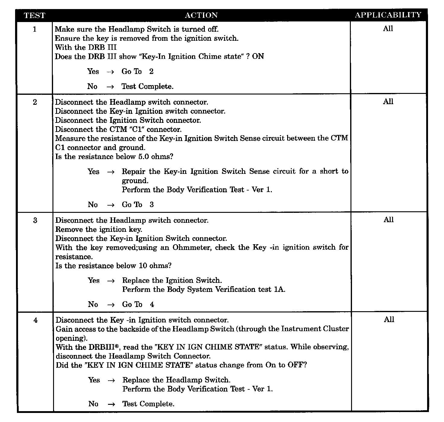Chime Sounds With Drivers Door Open and Key Removed From Ignition