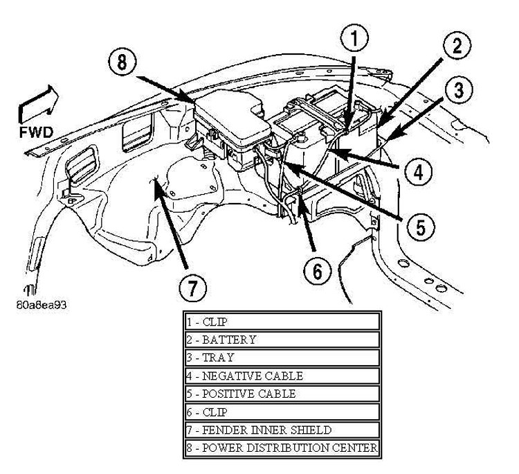 Power Distribution Center (PDC) is located in the left front corner of the engine compartment, just behind the battery.