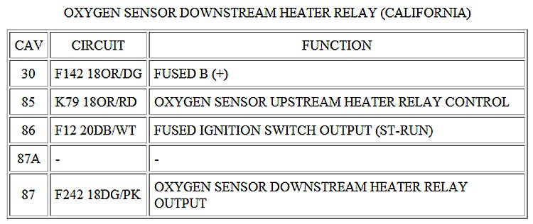 Oxygen Sensor Downstream Heater Relay (California):