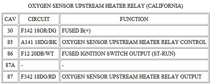 Oxygen Sensor Upstream Heater Relay (California):