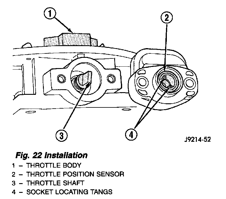The throttle shaft end of the throttle body slides into a socket in the TPS. The TPS must be installed so that it can be rotated a few degrees. If the sensor will not rotate, install the sensor with the throttle shaft on the other side of the socket tangs. The TPS will be under slight tension when rotated.
