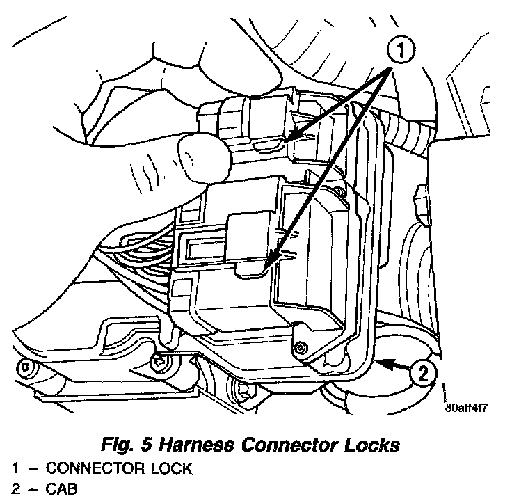 2. Push the harness connector locks to release the locks, then remove the connectors from the CAB.