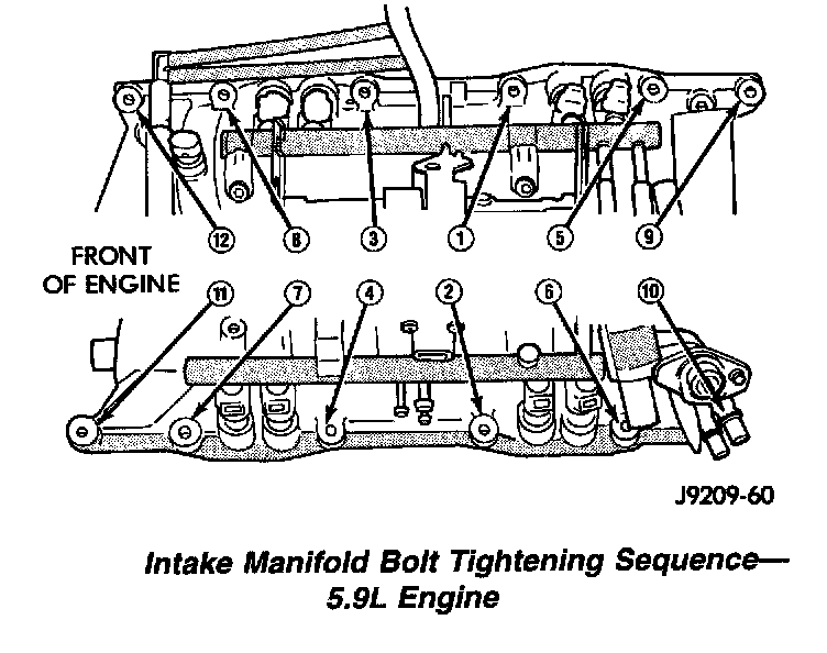 Install the intake manifold bolts and tighten as follows: