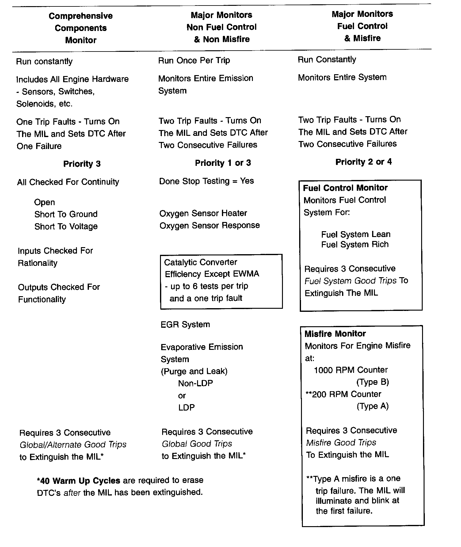 Certain criteria, or "arming conditions," must be met for a trouble code to be entered into the PCM memory. The criteria may be a range of: engine rpm, engine temperature, and/or input voltage to the PCM. If a problem is sensed with a monitored circuit, and all of the criteria or arming conditions are met, a trouble code will be stored in the PCM.